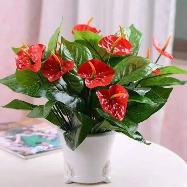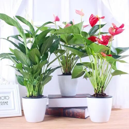 红掌和一帆风顺都是比较漂亮的开花盆栽,红掌喜庆漂亮,一帆风顺清新寓意好,这样的两种植物,它们的花期比较长,单次能开上30天左右,但是它却不需要太多的光照,只需要一些散射光就能长爆盆,若是光照太多,它们反而会黄叶,不开花,特别是红掌,光照太强,它开出来的花会小而淡,失去观赏价值。