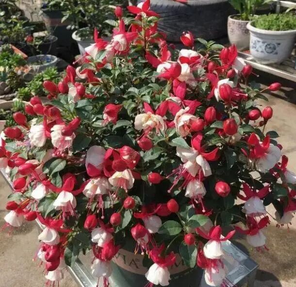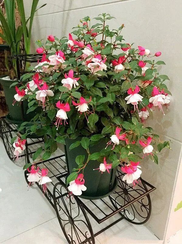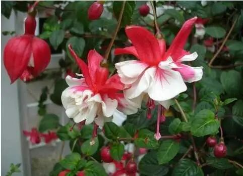 倒挂金钟的种类有很多,花型也很丰富,花色以粉、白、紫、蓝为主,叶片四季翠绿,清新漂亮,现在正是养倒挂金钟的好时候,养一盆,只要温度合适,就能四季开花。