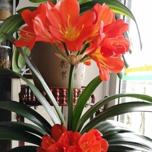 君子兰喝点啤酒水,叶子油亮抽箭快