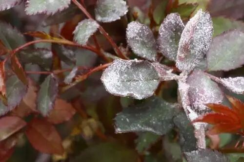 白粉病也是月季的常见病害,开始叶片边缘会微微发卷,翻开背面会看到白色粉末,如果任其发展,叶片、枝干和花朵上都会出现白粉。