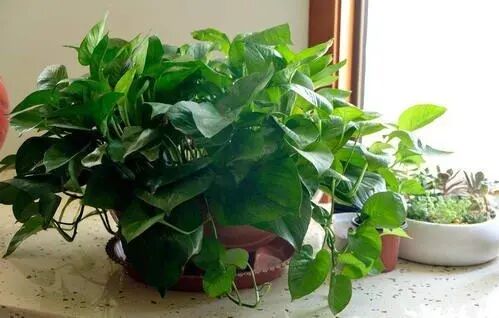 绿萝是一种非常健康的植物,它一年四季常绿,不仅能装饰居室环境,还能净化室内空气,吸收室内的一些有害气体,非常适合家庭盆栽养护。