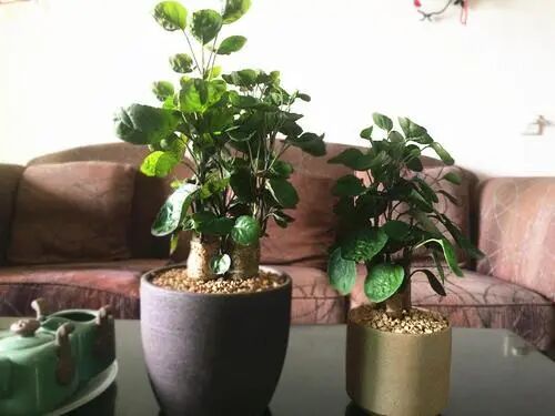 盆栽的金钱兜成年之后,株型一般是1-1.2米,主干明显,分枝较少,不易变形,养在家里养粗放管理就可以保持良好的株型。