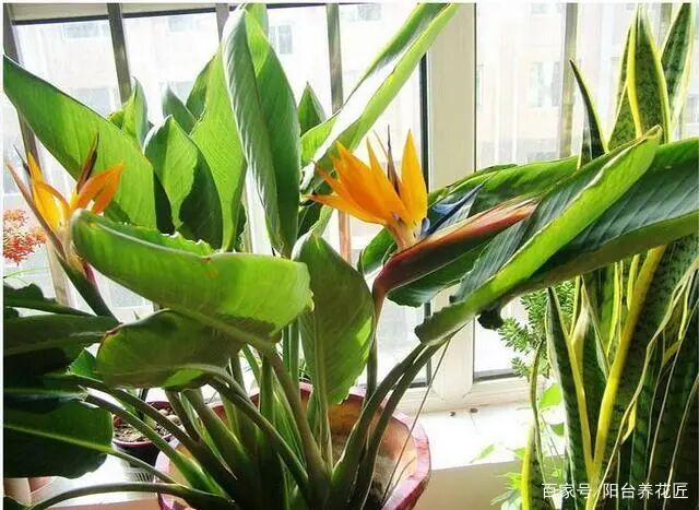 鹤望兰拥有很多的品种,如上图中的那一种,叶子又宽又大,但是植株不是很高,也就是1米左右,而这个品种的望鹤兰开花量大,会看出很多的花朵。