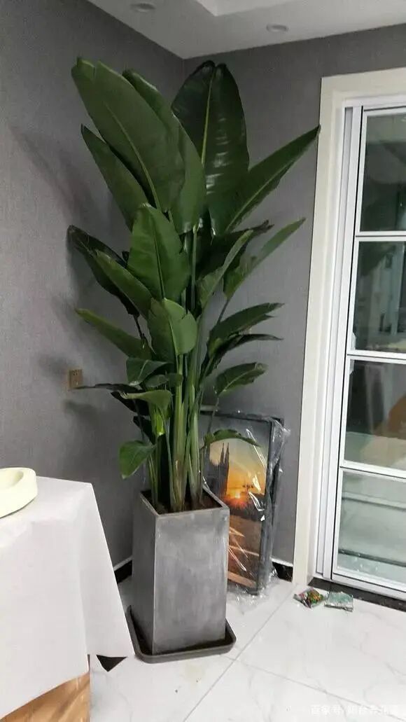还有的望鹤兰可以长得非常的高大,能长4、5米高,如下图这样的,但是这种望鹤兰开花不多,它叫大鹤望兰或是尼古拉鹤望兰,许多花友都喜欢这种望鹤兰宽阔挺拔的叶子,非常漂亮又高档。