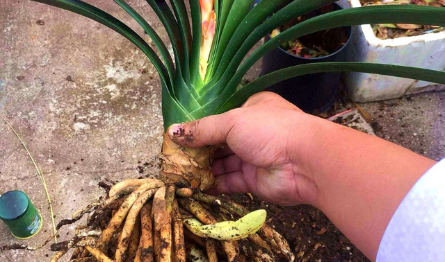 给君子兰脱盆后,别急着上盆,要先检查下君子兰的根系,经过一年以上的生长,君子兰多多少少都会出现不健康的根系,把这些根系修剪掉,可以促进新根的萌发,长新根才会长新叶。
