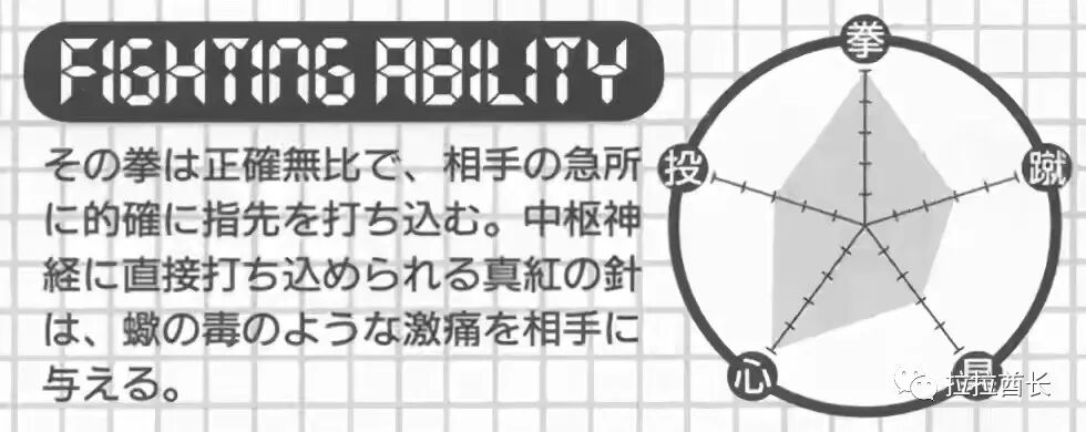 真正想要知道米罗的实力的话,那么我们大家也就需要翻墙,找出一本叫做《圣斗士大全》的设定集,这是一本集英社于2001年编辑出版的,由原著作者车田正美所监修的圣斗士资料画集,在这么的一本设定集里面,我们可以很轻易地翻找到天蝎座黄金圣斗士米罗的战力数据:投3拳5蹴3具3心5。