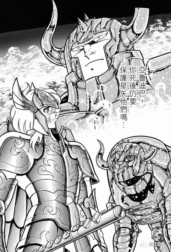 没错呀!金牛座的阿鲁迪巴在《北欧篇》遇袭的时候,就连头盔都碎成了好几块,后来在《冥王篇》中还照样是戴着头盔出场,估计也是经过一回修补的,但是若是有过修补的话,为何又偏偏没有把这个被星矢切下来的牛角给续上呢?即使是到了叹息之墙前,也仍然是缺了一只角的…
