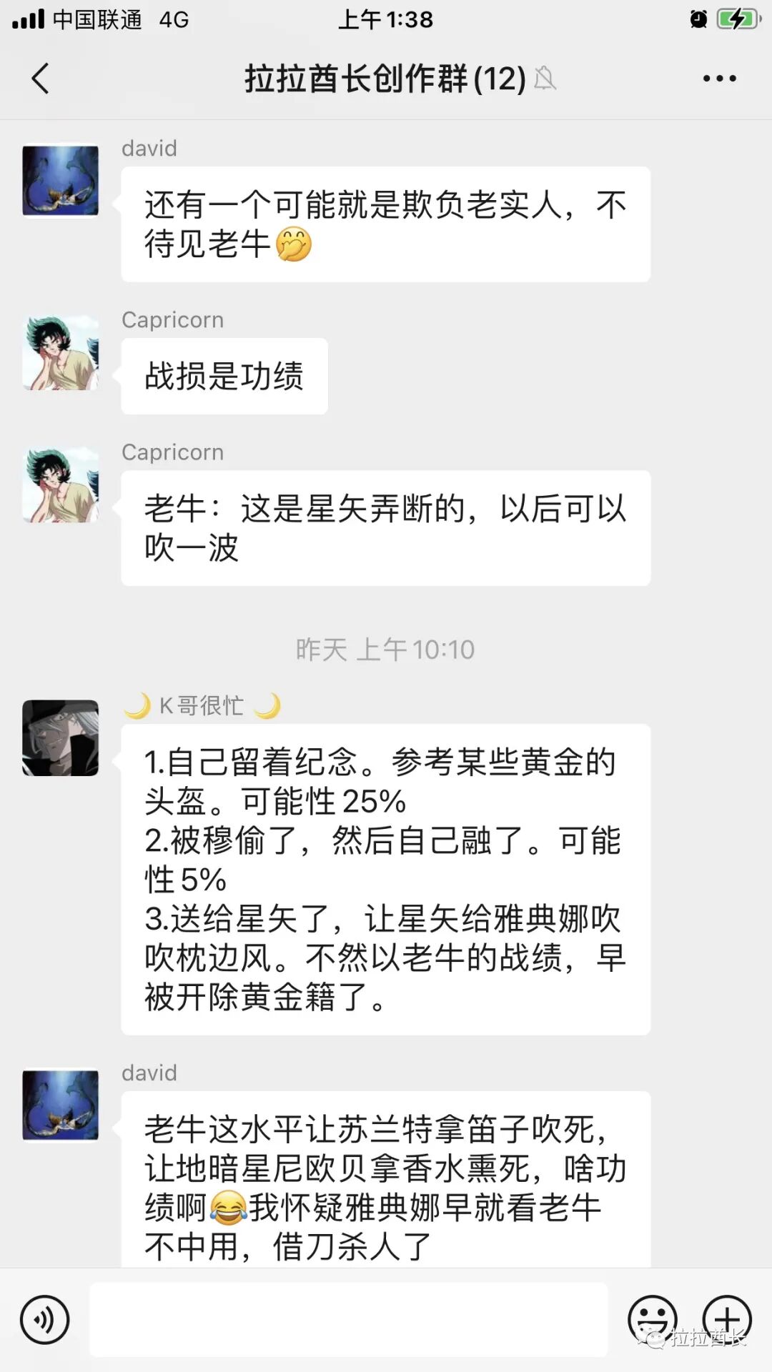 K哥很忙的高见:1、自己留着纪念。参考某些黄金的头盔。可能性25%。2、被穆偷了,然后自己融了。可能性5%,你看穆那个黄金圣衣,两个大羊角,增加一丢丢体积也看不出来。3、送给星矢了,让星矢给雅典娜吹吹枕边风。不然以老牛的战绩,早被开除黄金籍了。4、像老牛一样切个角下来拿去卖啊!5、缺材料,材料全了也不一定修复的起来。你看那个拆承重墙的新闻了么,修复不了。