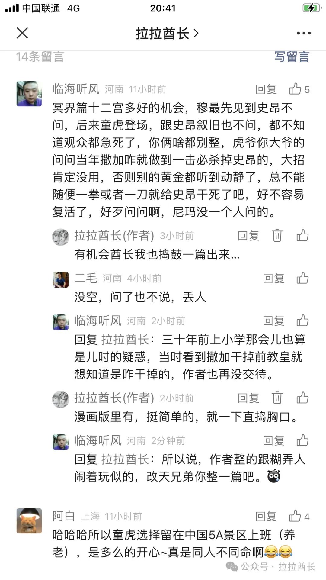 冥界篇十二宫多好的机会,穆最先见到史昂不问,后来童虎登场,跟史昂叙旧也不问,都不知道观众都急死了,你俩啥都别整,虎爷你大爷的问问当年撒加咋就做到一击必杀掉史昂的,大招肯定没用,否则别的黄金都听到动静了,总不能随便一拳或者一刀就给史昂干死了吧,好不容易复活了,好歹问问啊,尼玛没一个人问的。