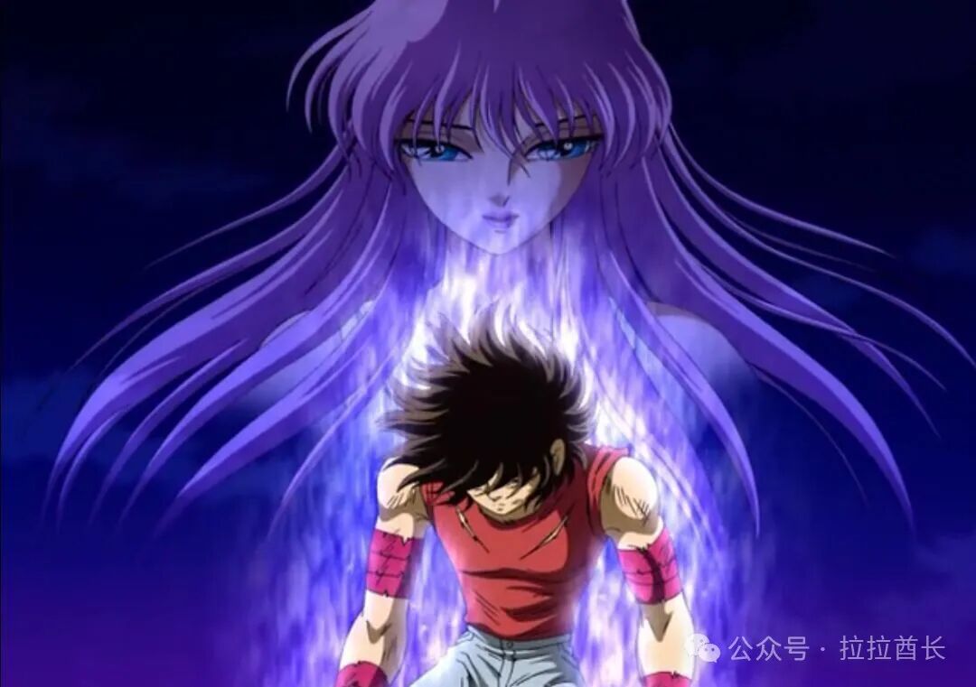 而到了《冥王篇》的极乐净土上时,星矢和城户纱织俩人更是将这份感情给演绎得淋漓尽致:凤凰座的一辉为城户纱织挡剑的时候,城户纱织没有什么感觉,但是到了天马座的星矢为城户纱织挡剑时,人家女神城户纱织一下就暴起了,直接一拐杖就给了冥王哈迪斯一个透心凉,而且还大声的问冥王哈迪斯:“哈迪斯!你知道什么叫做爱吗?”