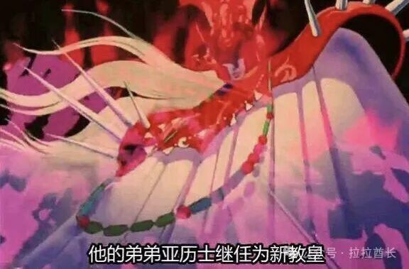 当然,在这么的一段剧情上,其实动画版与漫画版是并不一致的,动画版里面,教皇史昂是老死的,撒加仅仅只是干掉了代理教皇亚历士,但是原著的漫画版里面却是真实的教皇史昂被撒加给干掉了。