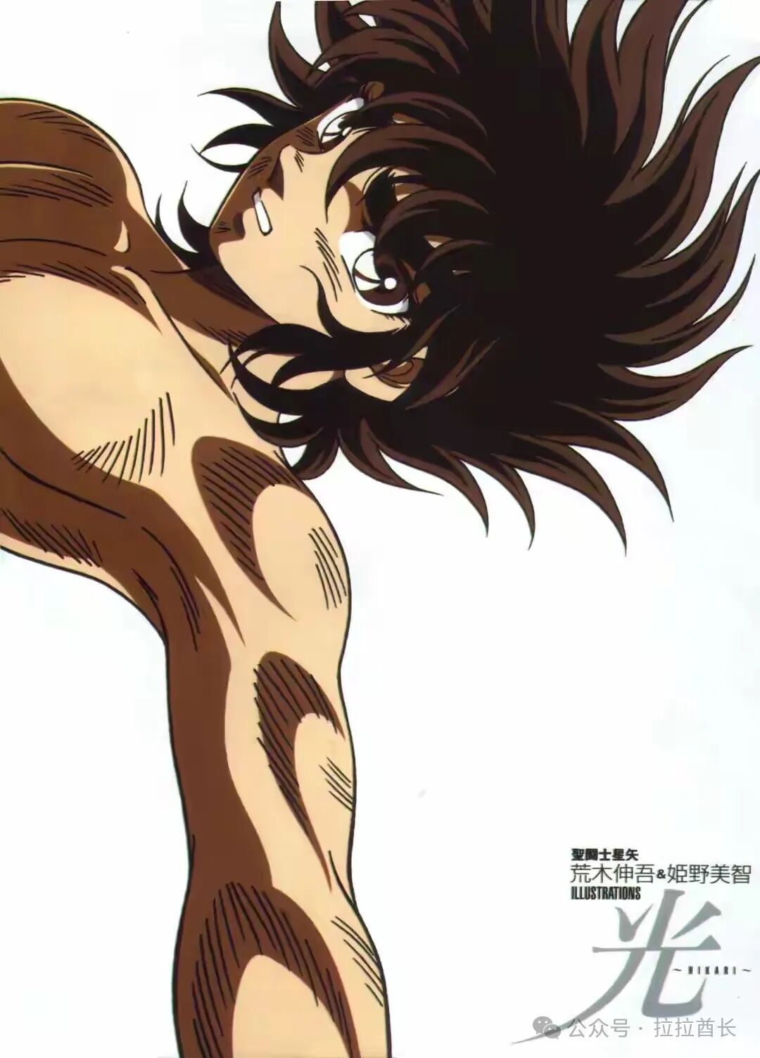 2004年,荒木伸吾与车田正美的《宙》共同发表的原作集《光》,收录了许多《圣斗士星矢》动画版的经典原画,而对于我们这些小伙伴们来说,在这本原画集里面的许多的图片,都是我们大家平时最喜欢的图片。