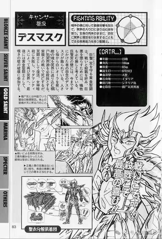 当然,这一些关于黄金圣斗士们的设定集的资料,其实也是仅适用于漫画原著里面的,并没有将动画版里面的内容概括进去,因此也就仅是可供参考,这个对于拥有自己想法的小伙伴们来说,其实也是一个程序上的后门,大家可以自己看着办…