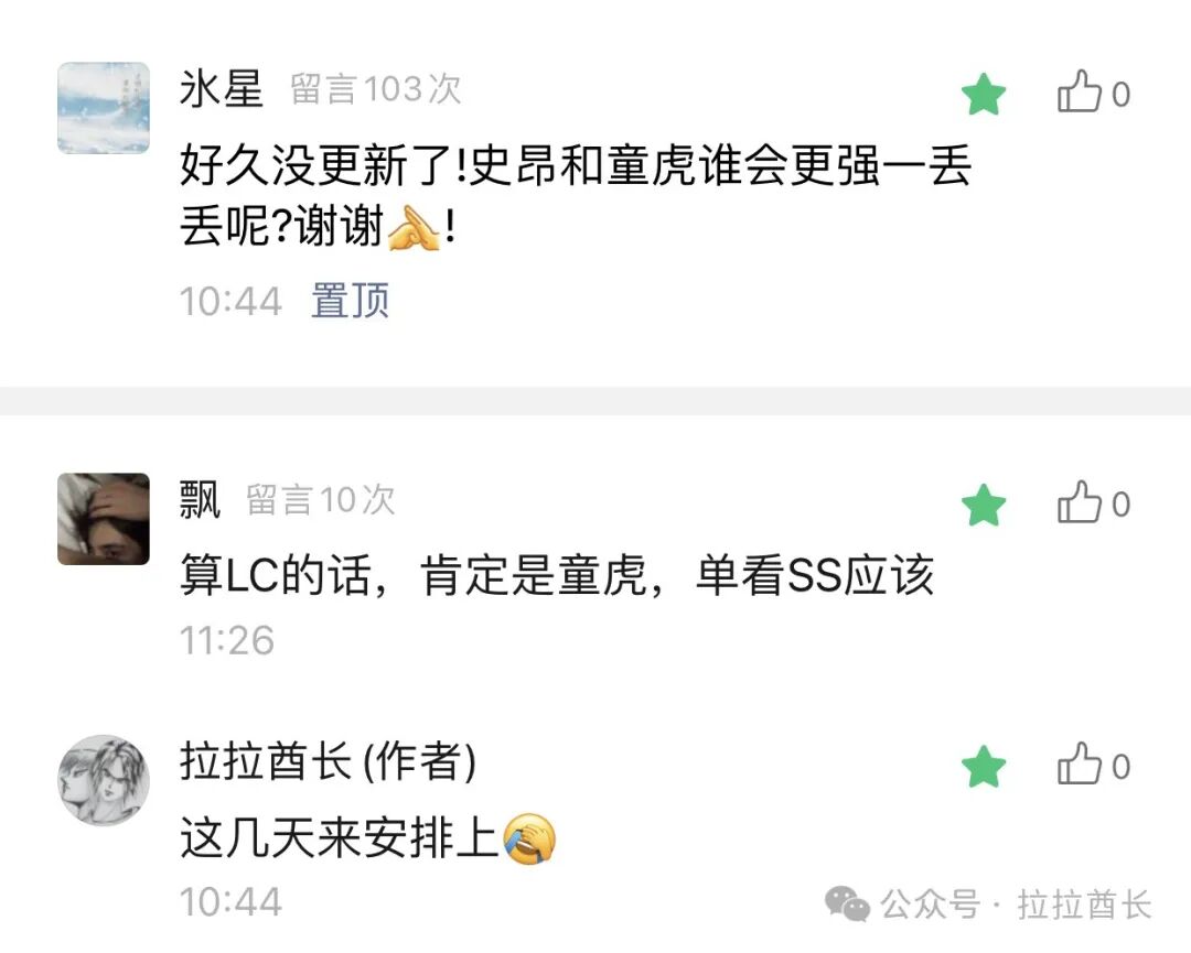 至于其他的版本,如《冥王神话LC 》中,酋长我个人觉得在魔星宫中,童虎的实力是要比史昂强上一丢丢的,至少在面对辉火时,童虎还有一战之力,但是到了史昂坐上教皇之位后,估计史昂的实力也就跟上来了,毕竟在LC的最后剧情中,史昂在面对杳马的时候,其的超强发挥估计也是要比同时期的童虎强的,因此在不同的时期,史昂与童虎之间的强弱,应该也不是固定不变的。