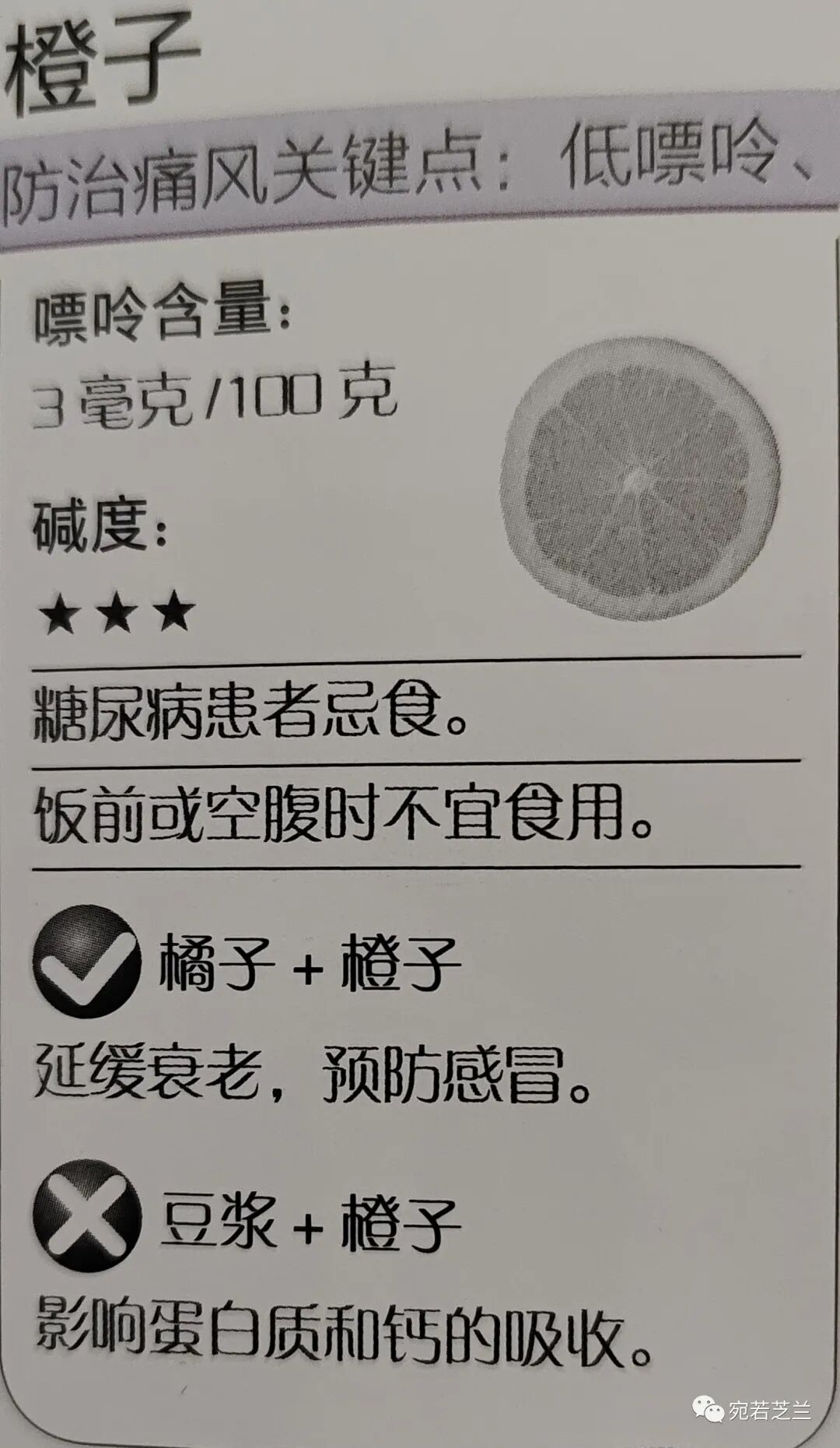 橙子富含维生素C、钾,能促进尿酸的溶解,从而不易形成结石。另外,橙子具有降低血液中胆固醇的功效,能预防痛风并发高血压、高脂血症。防治痛风吃法:可直接食用,也可榨汁或与其他食材搭配做成菜肴。若榨汁应立即饮用,否则其维生素C很快就会被氧化。