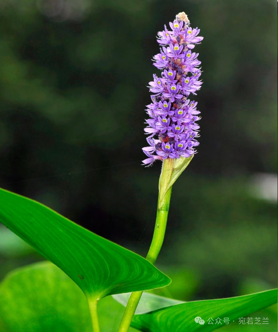 美丽与优雅:梭鱼草的花瓣细长优雅,常用于插花,象征着追求美好生活的愿望和对美的追求。