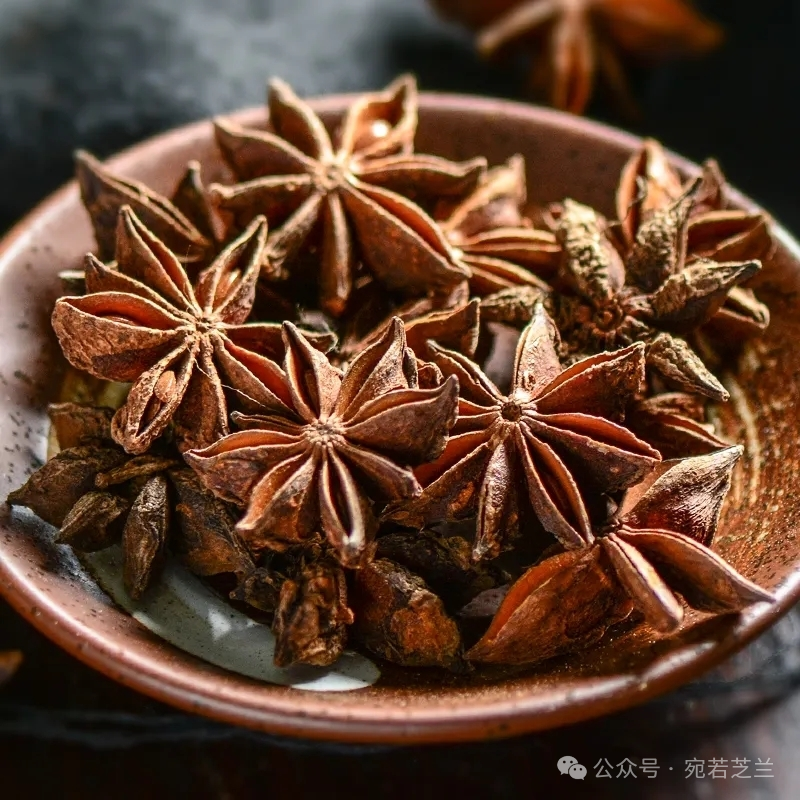 八角茴香为八角科,八角属植物八角茴香的果实,具有温中散寒、理气止痛、健胃止呕等功效。