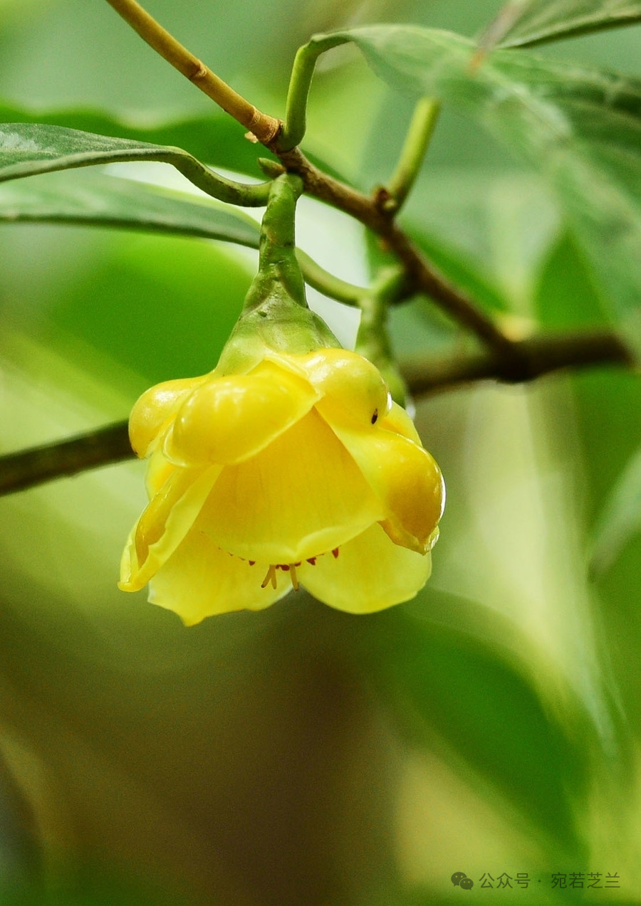 花黄色,腋生,单独,花柄长7~10毫米;苞片5片,散生,阔卵形,长2~3毫米,宽3~5毫米,宿存。