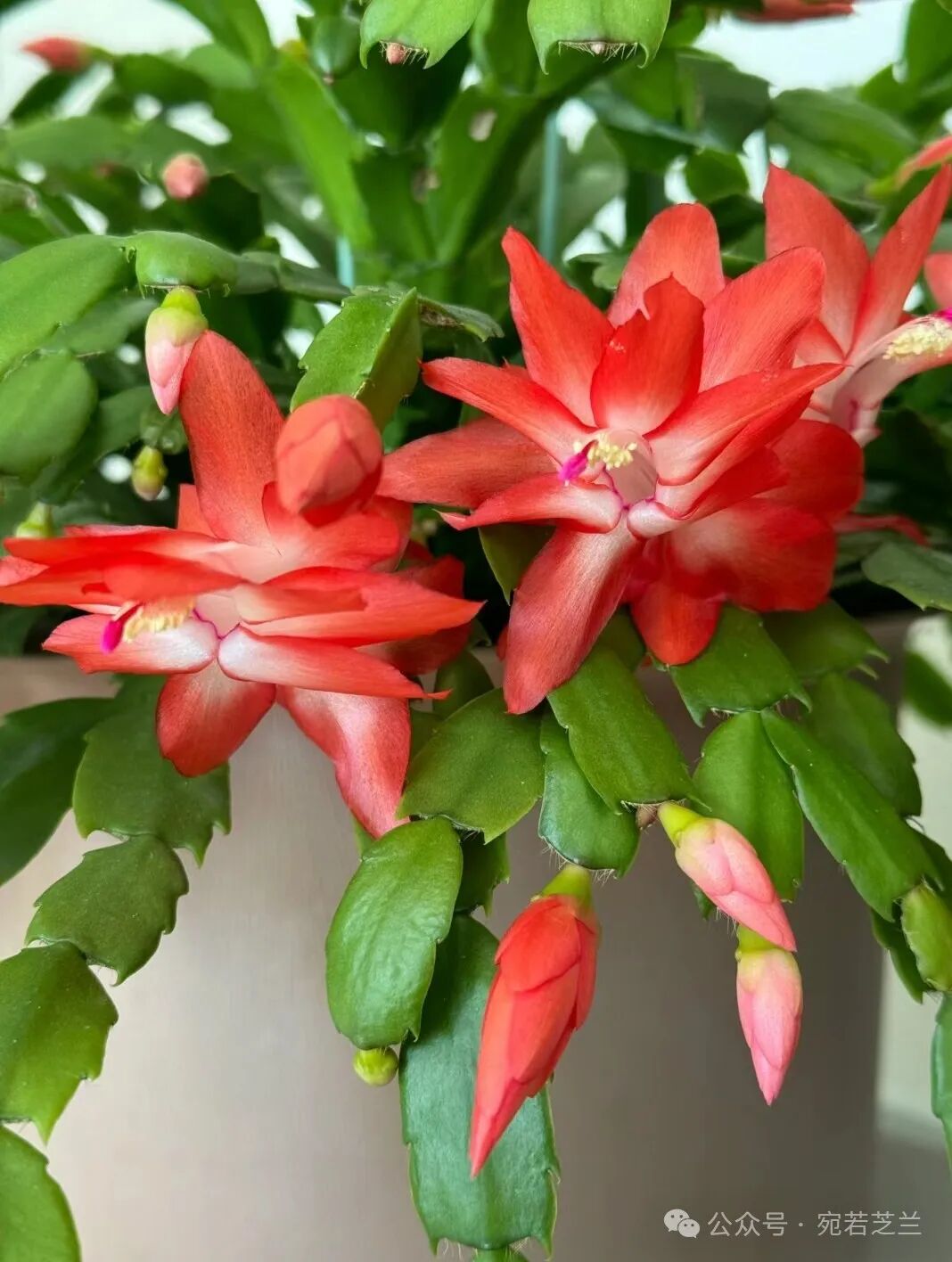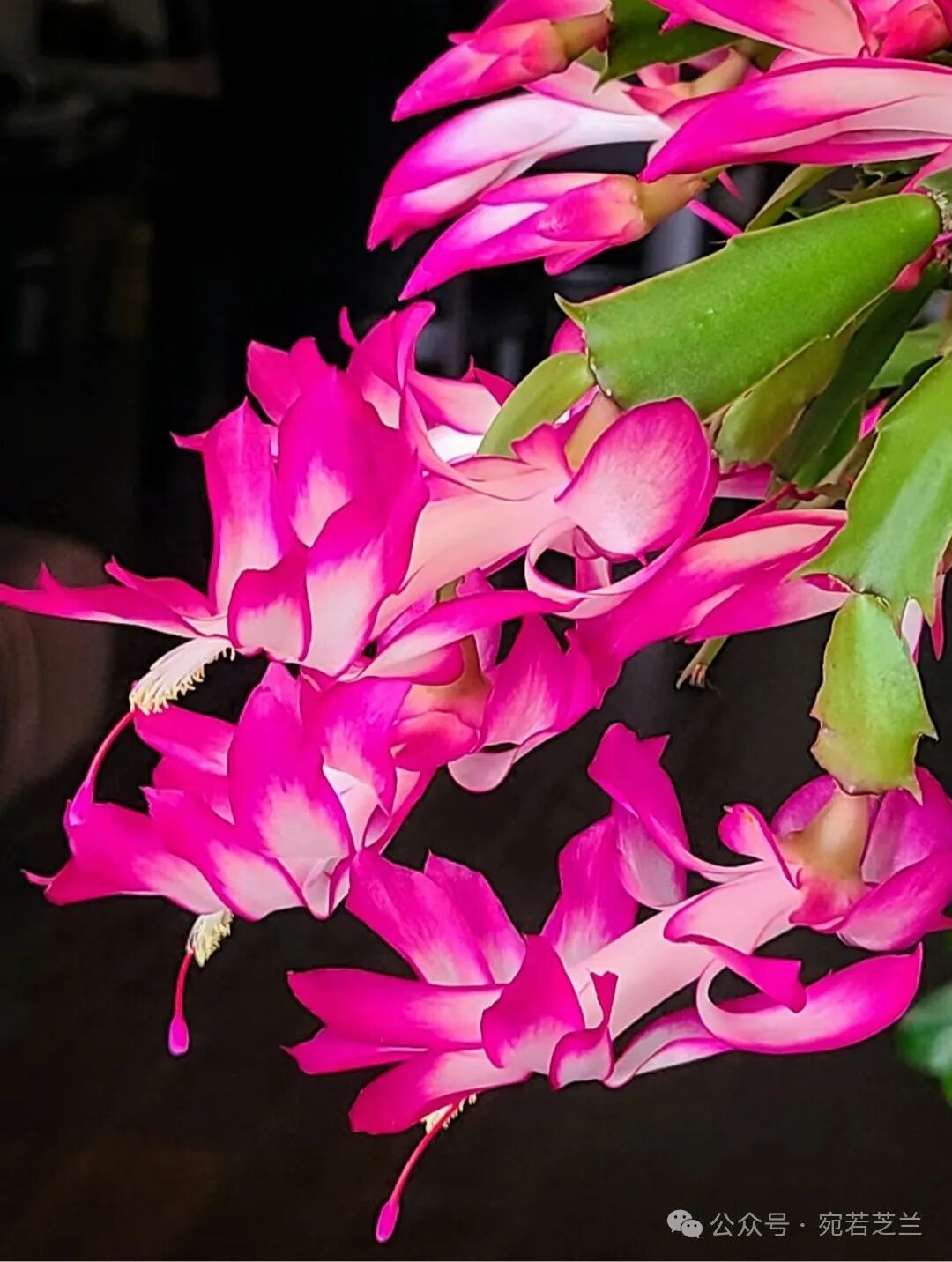蟹爪兰开花正逢圣诞节、元旦节,株型垂挂,花色鲜艳可爱,适合于窗台、门庭入口处和展览大厅装饰,热闹非凡,顿时满室生辉。