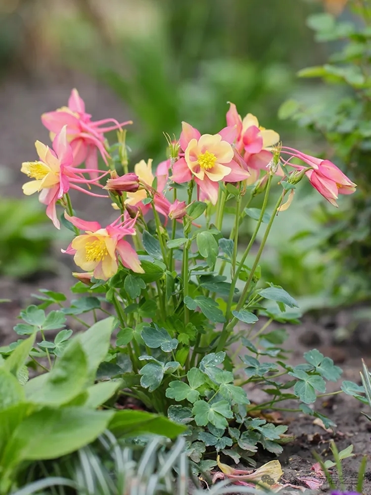 最引人注目的莫过于它那色彩丰富的花朵,通常由5枚萼片组成,形状似漏斗,故得名“耧斗菜”。