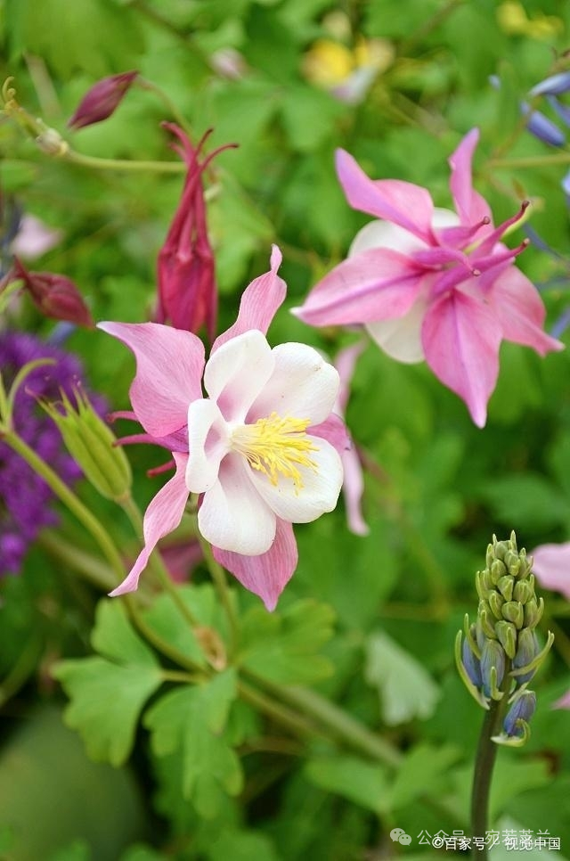 从纯白到深蓝,从粉红到紫红,耧斗菜的花朵仿佛是大自然最精致的调色盘,每一朵都散发着独特的韵味与生命力。