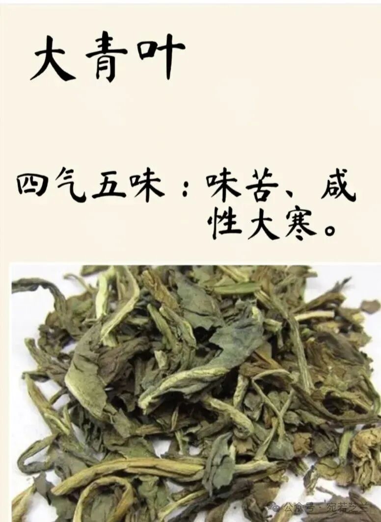 大青叶:其味苦、性寒,归肝经、心经、胃经及脾经。
