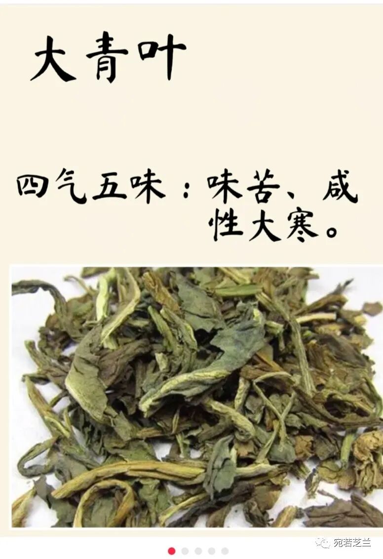 大青叶:性味归经、苦咸大寒,归心肺胃经。