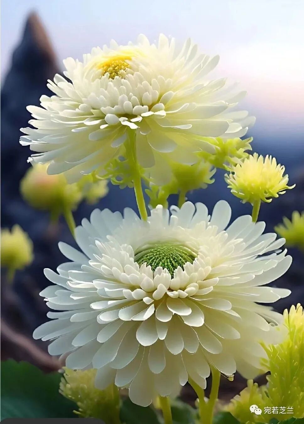 头状花序顶生或腋生,茎干颜色为嫩绿或褐色,花瓣外观有园抱、退抱、反抱、乱抱、露心抱、飞午抱等等类型。