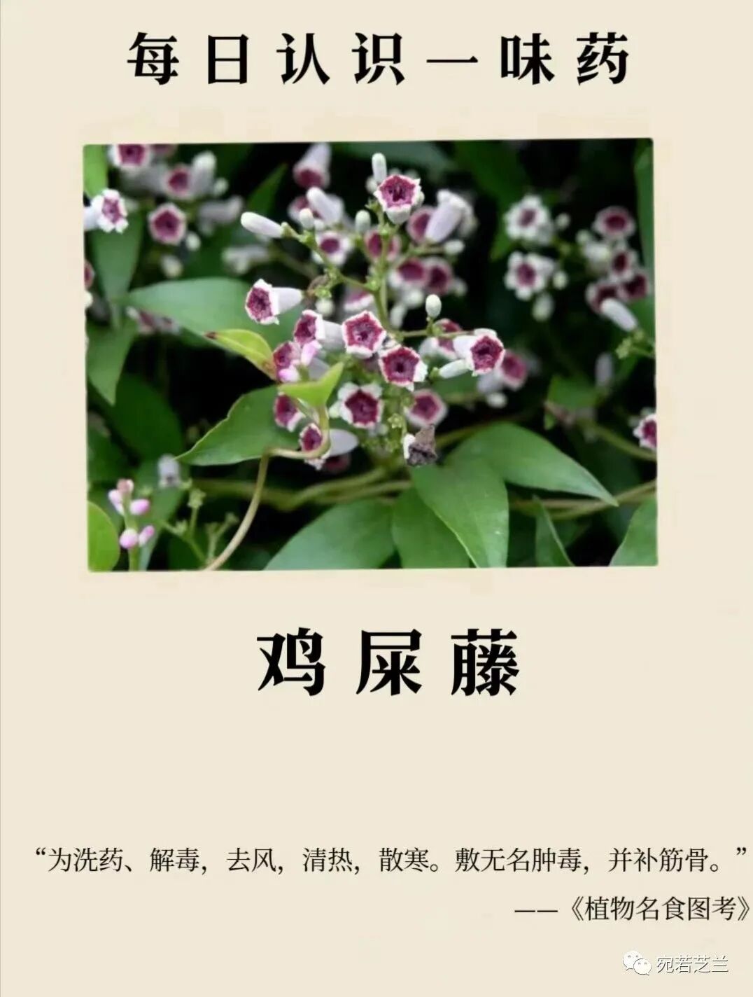 鸡屎藤是植物鸡屎藤的全草或根。鸡屎藤有消暑除湿、消积下气、祛风活血和解毒的功效,特别鸡屎藤对小孩有非常好的保健作用。这是为什么?因为小孩太容易食滞胃肠又容易有疳积,所以这个时候用鸡屎藤效果是最好。鸡屎藤除了能够消暑之外,还有消积除疳和利肝退黄等等功效。此外还可以解痉活血和祛风止痛,所以鸡屎藤也可用于风湿痹痛以及日常跌打损伤等病症。此外鸡屎藤外用可以治疗烫伤、湿疹皮炎、蛇虫咬伤以及无名肿毒的病症,所以鸡屎藤的药用范围还是比较广。