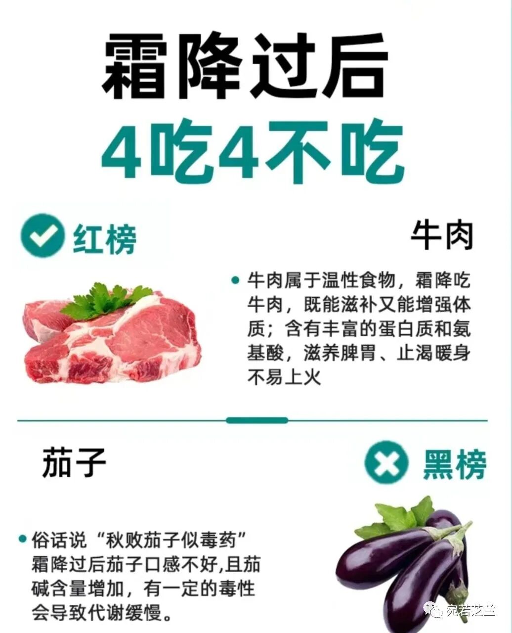 俗话说“秋败茄子似毒药”,霜降过后茄子口感不好,且茄碱含量增加,有一定的毒性,会导致代谢缓慢。