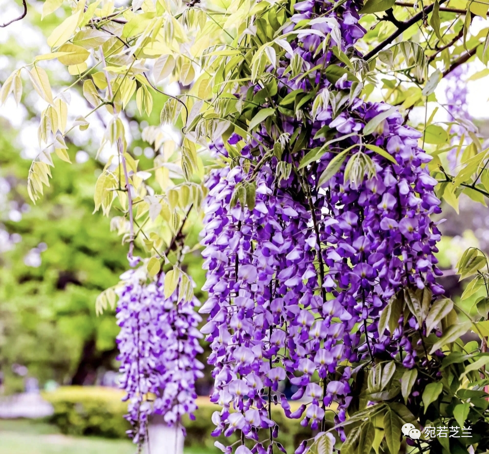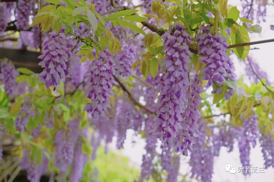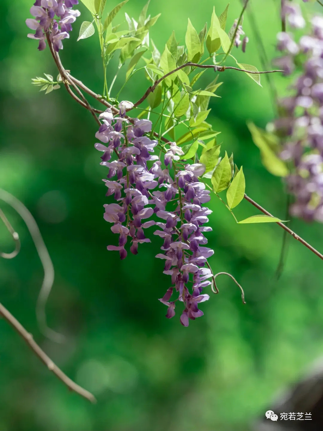 紫藤有一种刚柔并济的奇妙气质其藤干遒劲,花枝袅娜,一串串,一簇簇在春日里嫣然含笑、恣意生长那自骨子里透出的柔美淡雅三分清丽、三分诗情、三分画意还有一分浓淡相宜的开合随意令人不觉沉醉。