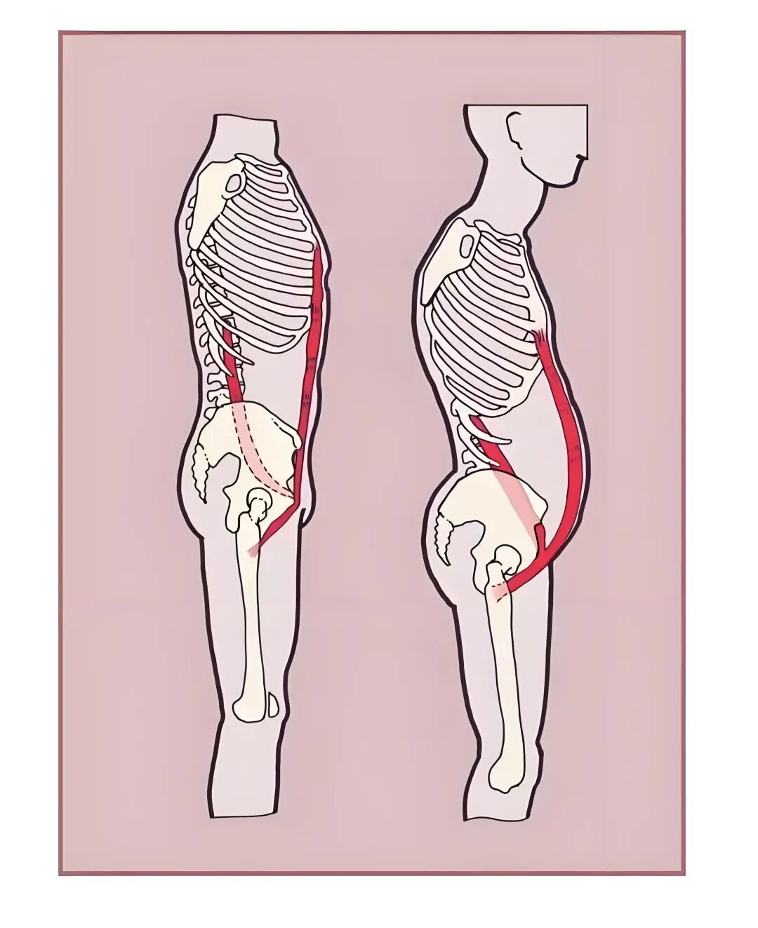 但是当一个人骨盆前倾的情况下,意味着两边的骨盆,都呈现出往前,往外展,往外打开的状态,在这种情况下,那他所有的脏器会被更多的被推挤。