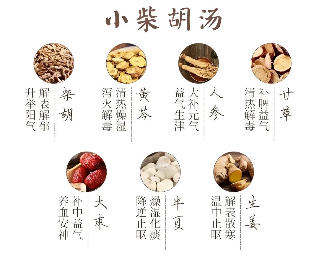 今天应铁粉要求,讲一下【小柴胡汤】,现在也有做成小柴胡颗粒(柴胡、姜半夏、黄芩、党参、甘草、生姜、大枣),到底应该如何辨证适用