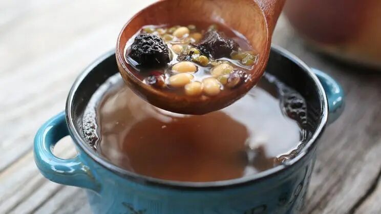 配方:乌梅5颗、黄豆50g、黑豆50g、绿豆50g。