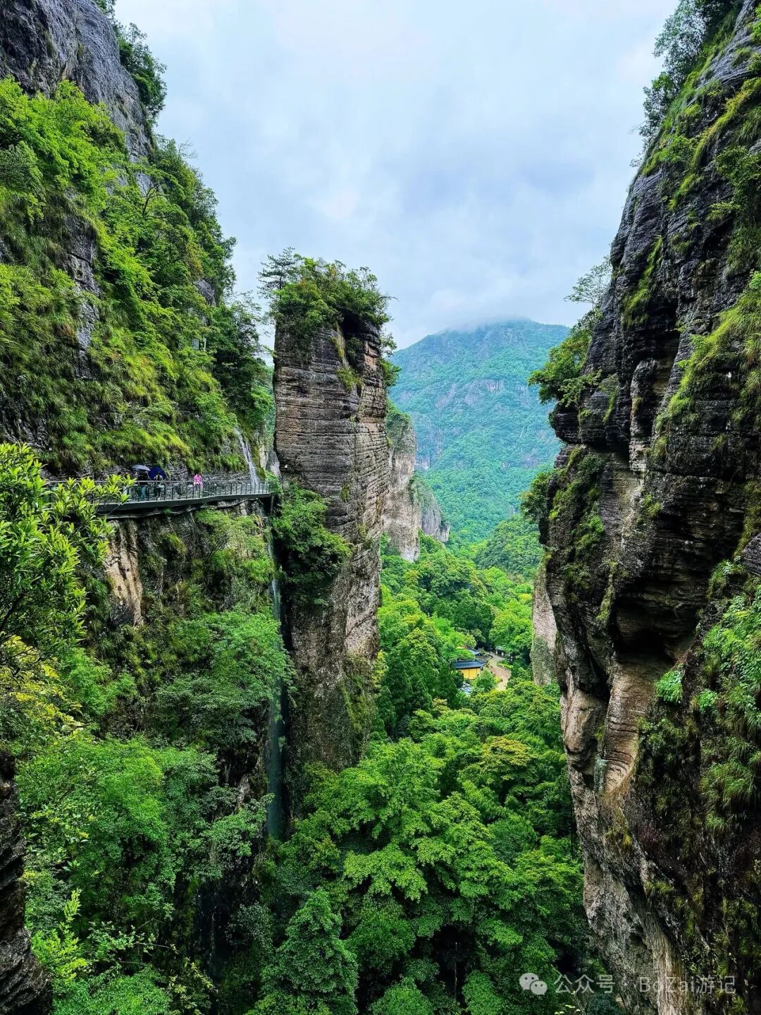 雁荡山的夏日,是一场与清凉的约会。第一天,我怀着期待的心情来到了大龙湫瀑布。还未走近,便能听到那震耳欲聋的水声,仿佛是大自然奏响的宏伟乐章。当我终于站在瀑布脚下,那磅礴的气势让我为之震撼。落差达 190 米的瀑布如银河落九天,水花四溅,如烟如雾。清凉的水汽扑面而来,瞬间驱散了夏日的燥热。我沿着平缓的徒步路段前行,身旁是飞瀑流泉,耳边是潺潺水声,仿佛置身于一个清凉的世界。在这里,时间都仿佛慢了下来,我尽情地享受着这大自然的恩赐,让身心得到了极大的放松。