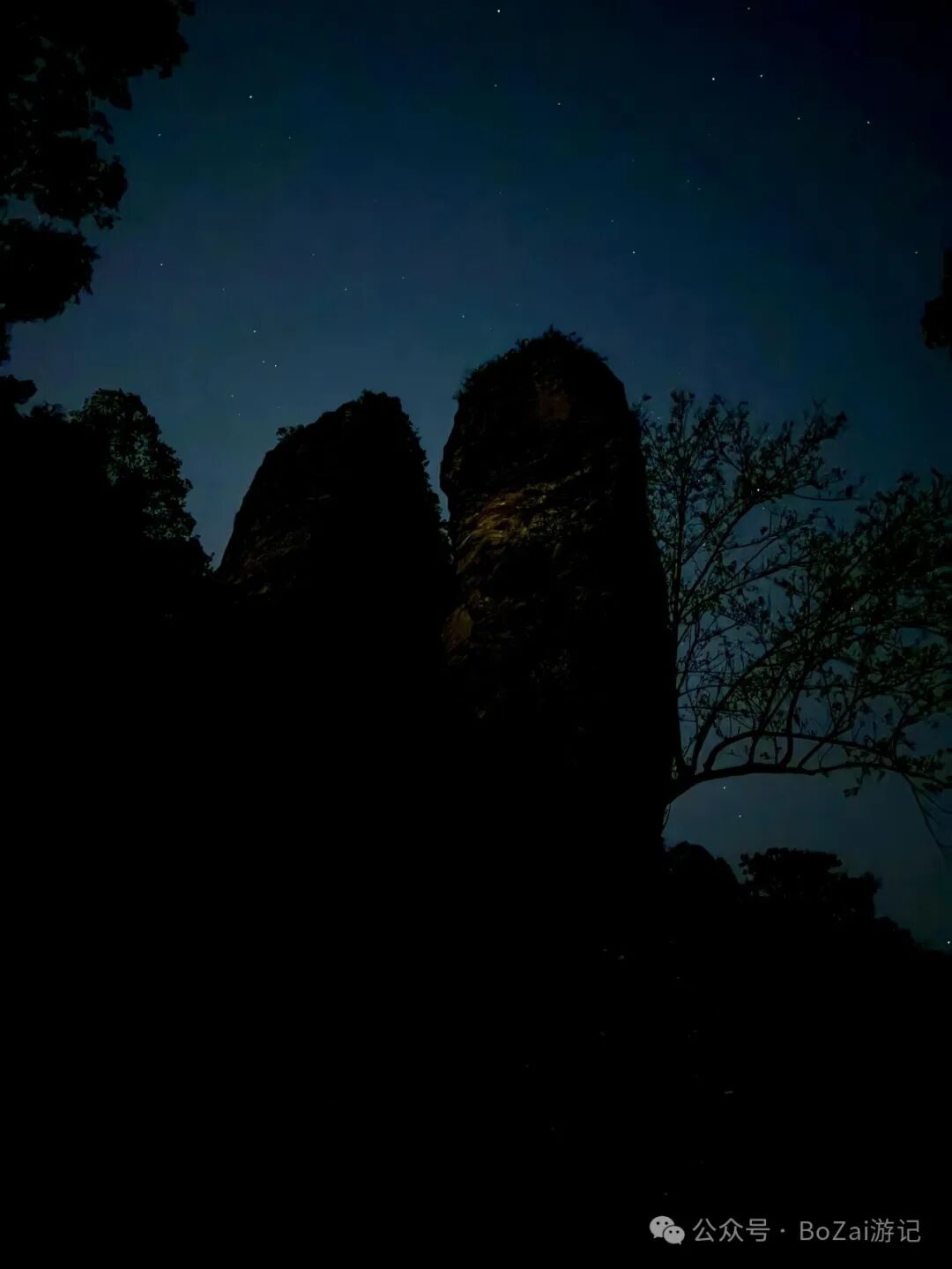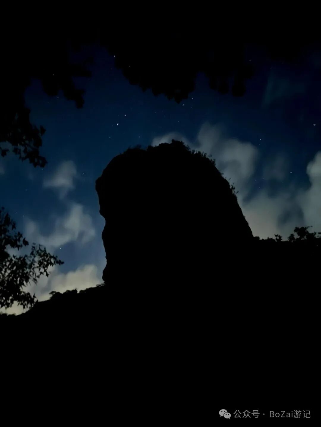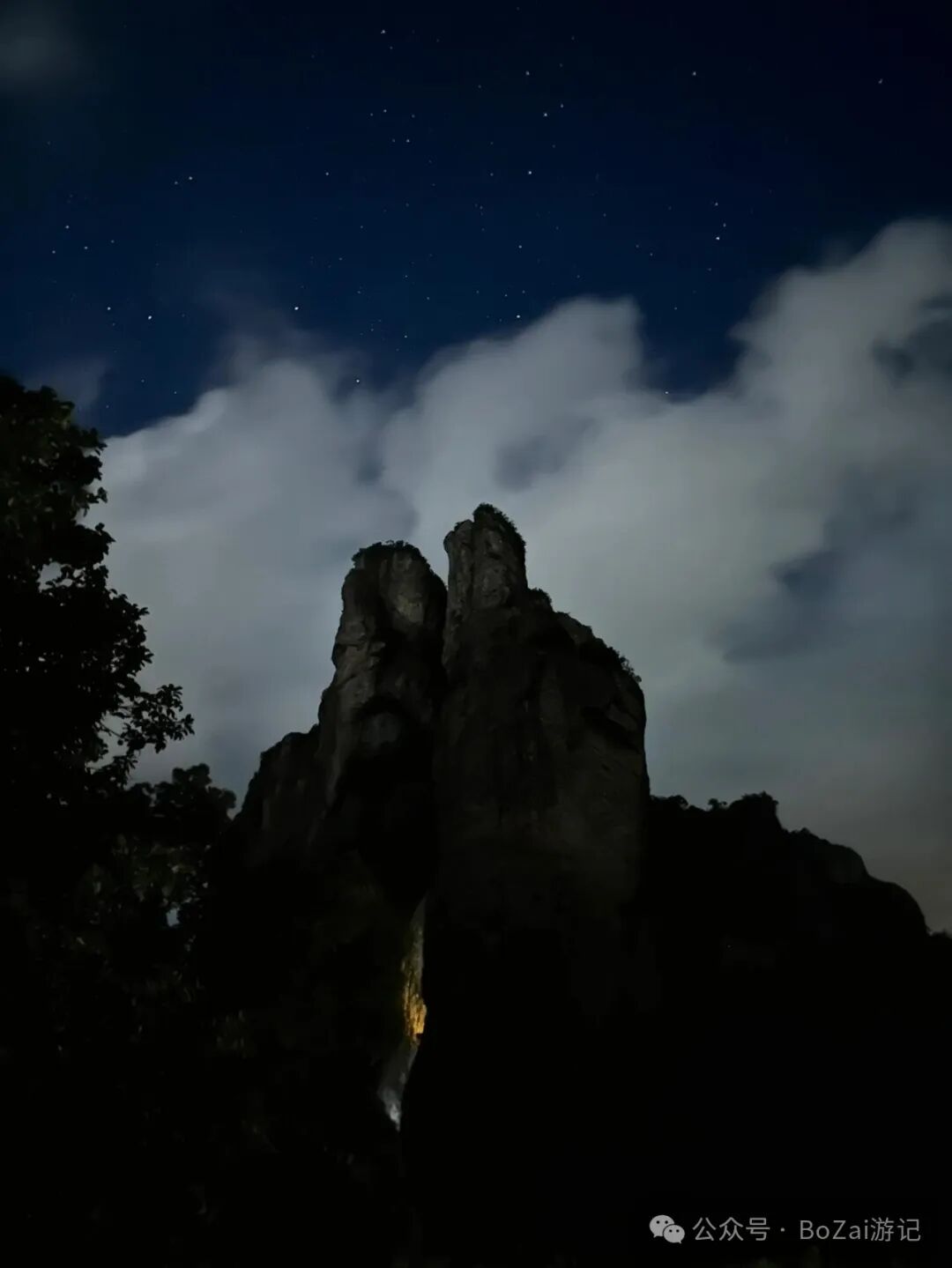 夜幕降临,灵峰展现出了它独特的魅力。白天的奇峰怪石在夜色中幻化成了各种神秘的形态,如同一场大自然的“皮影戏”。在月光的映衬下,山峰的轮廓更加清晰,仿佛是一个个守护着这片土地的神灵。我漫步在山间小道上,感受着夜晚的宁静与清凉。微风轻轻拂过,带来了阵阵草木的清香,让我的心灵得到了前所未有的宁静。