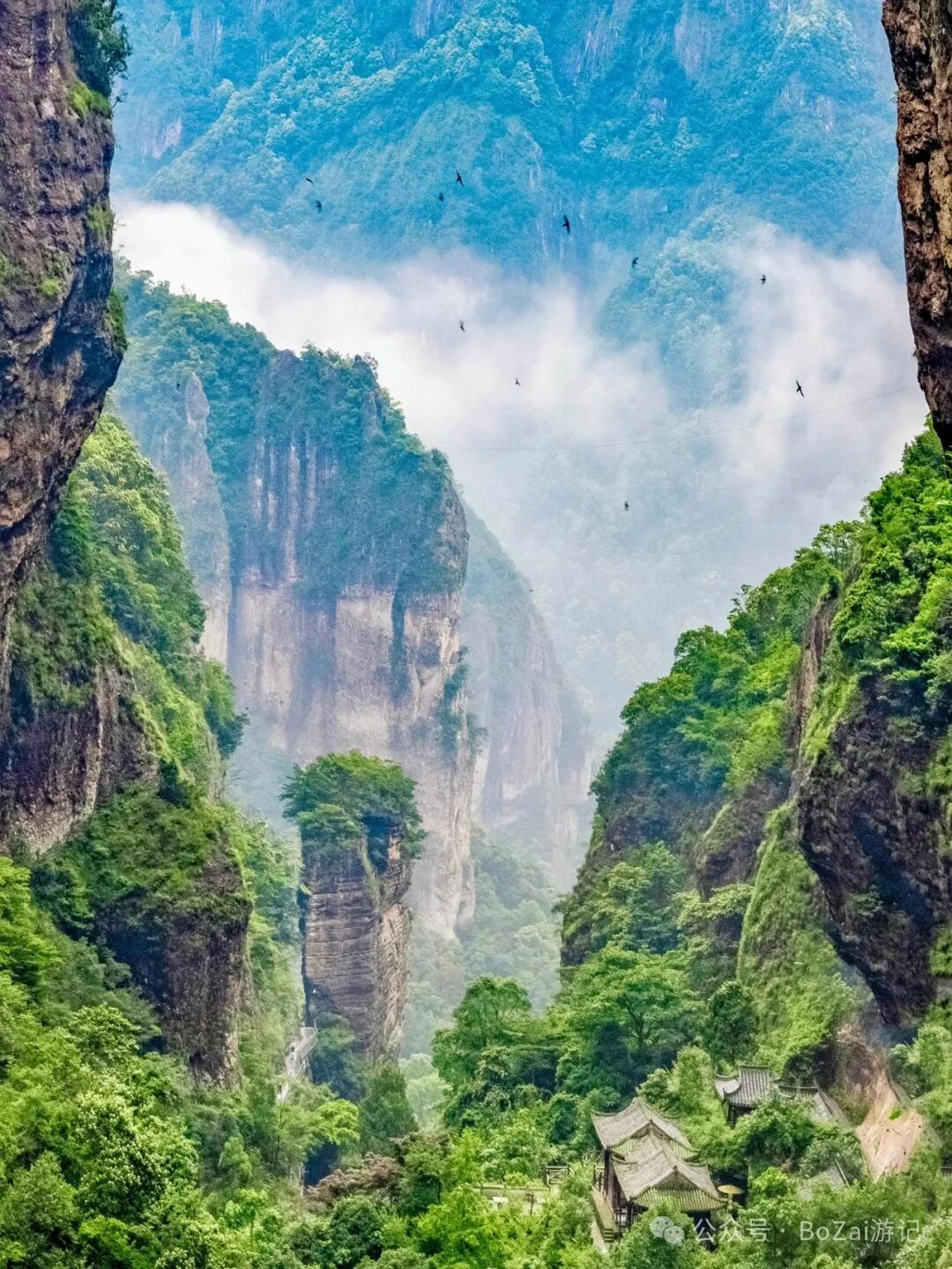 第二天,我来到了方洞和灵岩。方洞那位于悬崖上的方形山洞让人惊叹不已,险峻的栈道和天空之桥更是挑战着我的勇气。沿着卧云栈道前行,眼前的风光如诗如画。一侧是陡峭的悬崖,一侧是幽深的山谷,而远处的山峦连绵起伏,云雾缭绕。在这惊险与美丽并存的道路上,我感受到了大自然的伟大和自己的渺小。从方洞一直走到灵岩景区,一路上的风景让我陶醉其中。