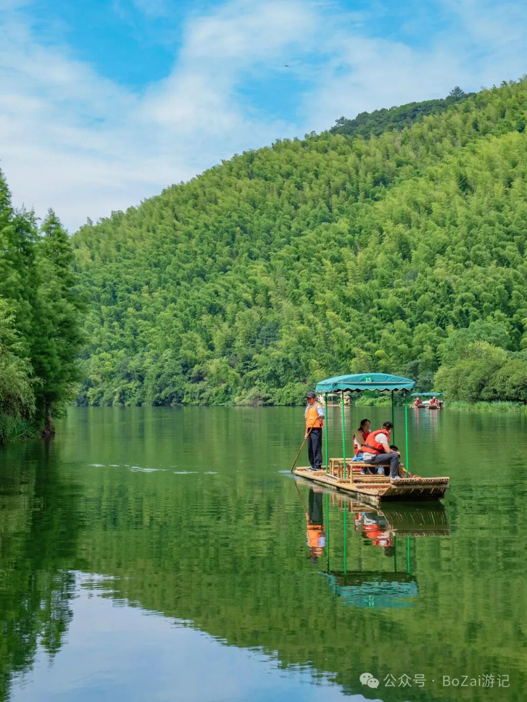 首先,一定要去体验一下那竹筏泛舟静湖的美妙。静湖,犹如一面镜子,平静而清澈,倒映着四周的青山翠竹。踏上竹筏,缓缓地在湖中前行,湖水在竹筏的推动下泛起微微的涟漪。清凉的湖水触手可及,偶尔用手轻轻拨动,溅起的水花带来一阵清凉,瞬间驱散了夏日的燥热。闭上眼睛,感受着微风的轻抚,听着湖水轻轻拍打竹筏的声音,仿佛时间都在这一刻静止了,内心的喧嚣与烦恼也随之烟消云散。