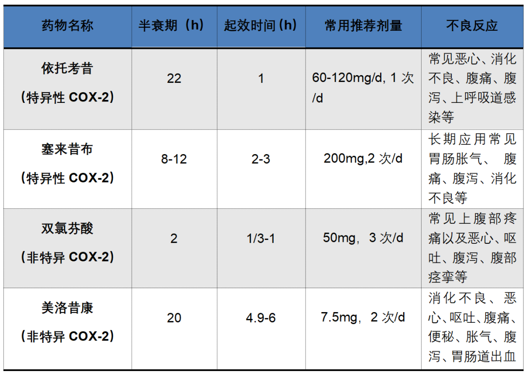 *笔者挑选基层常见的部分非甾体类药物进行列表
