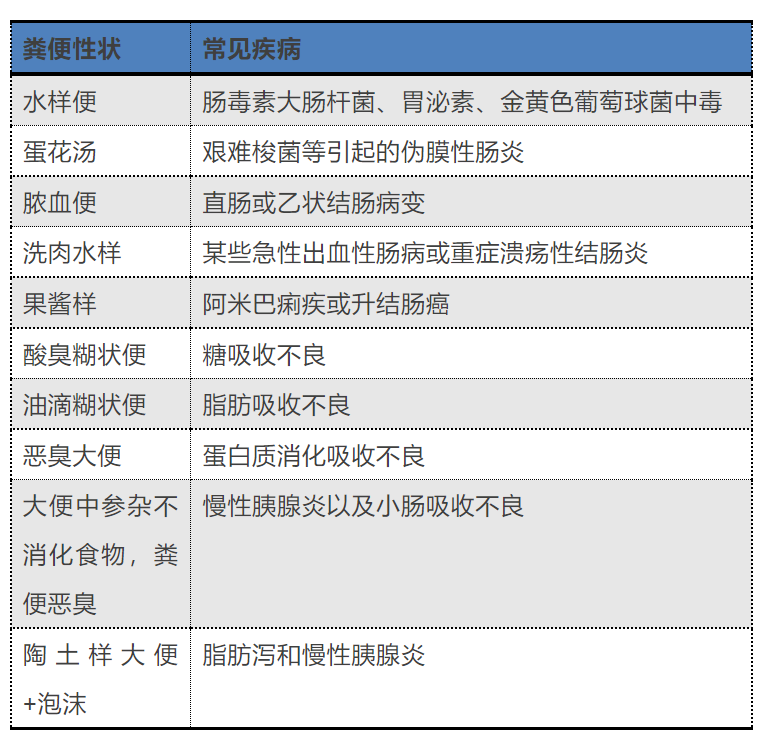 此外,大便性状也是体现腹泻病因的重要线索,基层医生除了询问患者的排便情况,还需要观察患者粪便性状。