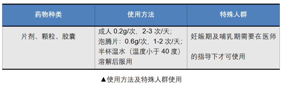 泡腾片:温开水溶解后服用,成人一次30-60mg,一天3次。