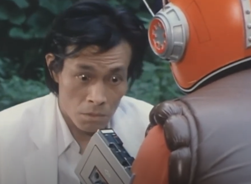 特兹举起了一个小型板砖型录音机,磁带换换转动,响起了老伴的声音,只听录音机里的老伴说,他还只是个孩子,他那么单纯,沉浸在自己的研究中,希望克赛队保护好他。