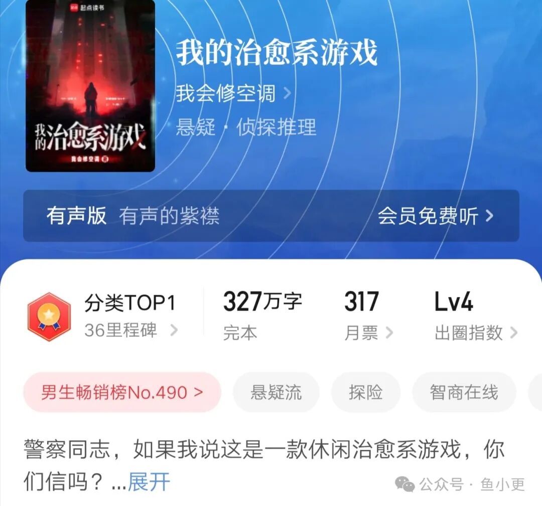 《我的治愈系游戏》总字数才三百多万,荣誉三星,收藏量五十万起步,出圈指数四级,入藏上海图书馆百部精品小说之一以及分类第一。
