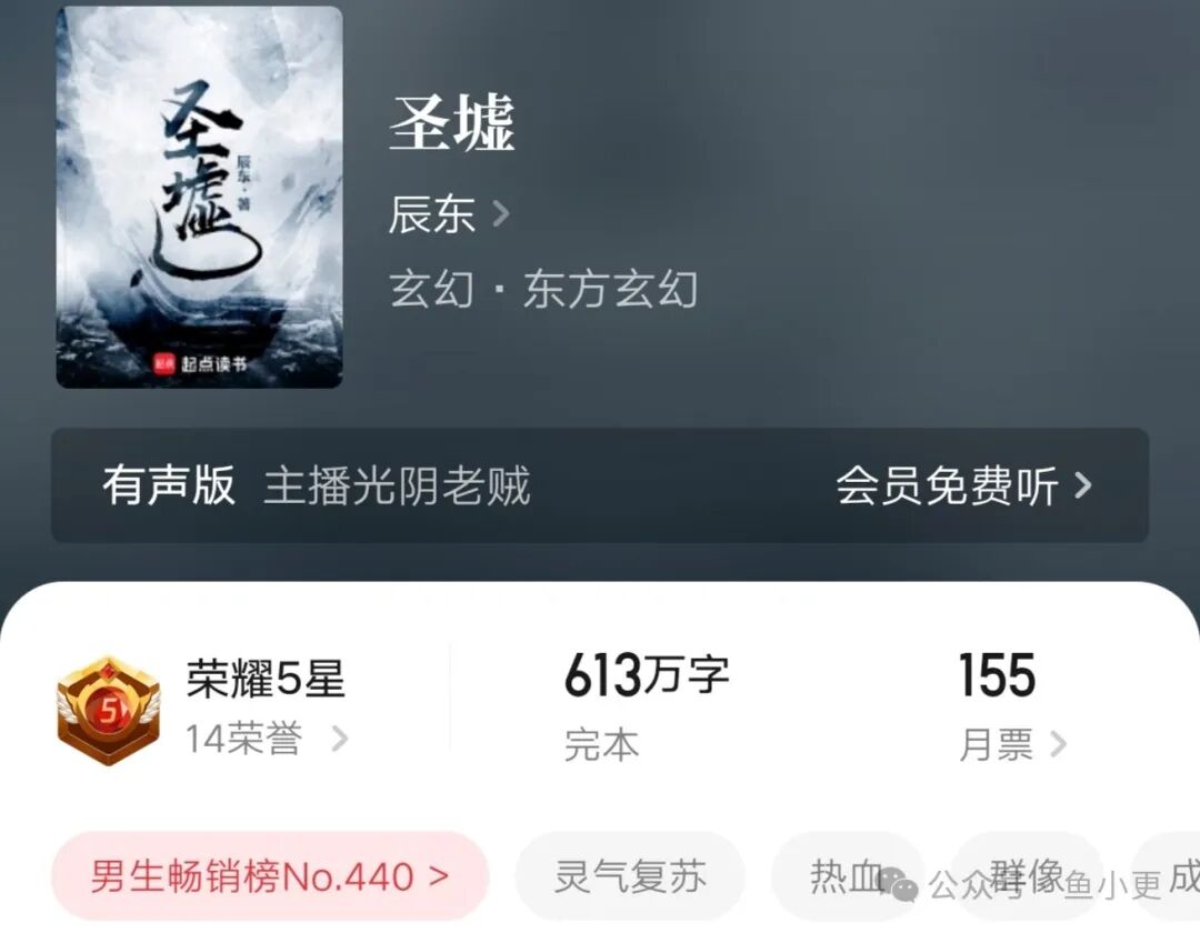 《圣墟》能上荣耀五星,多亏读者们的追捧,哪怕一个星期一更,或者一两个月一更,都没去在意,十分理解作者不详,这就是顶流大神的人气。