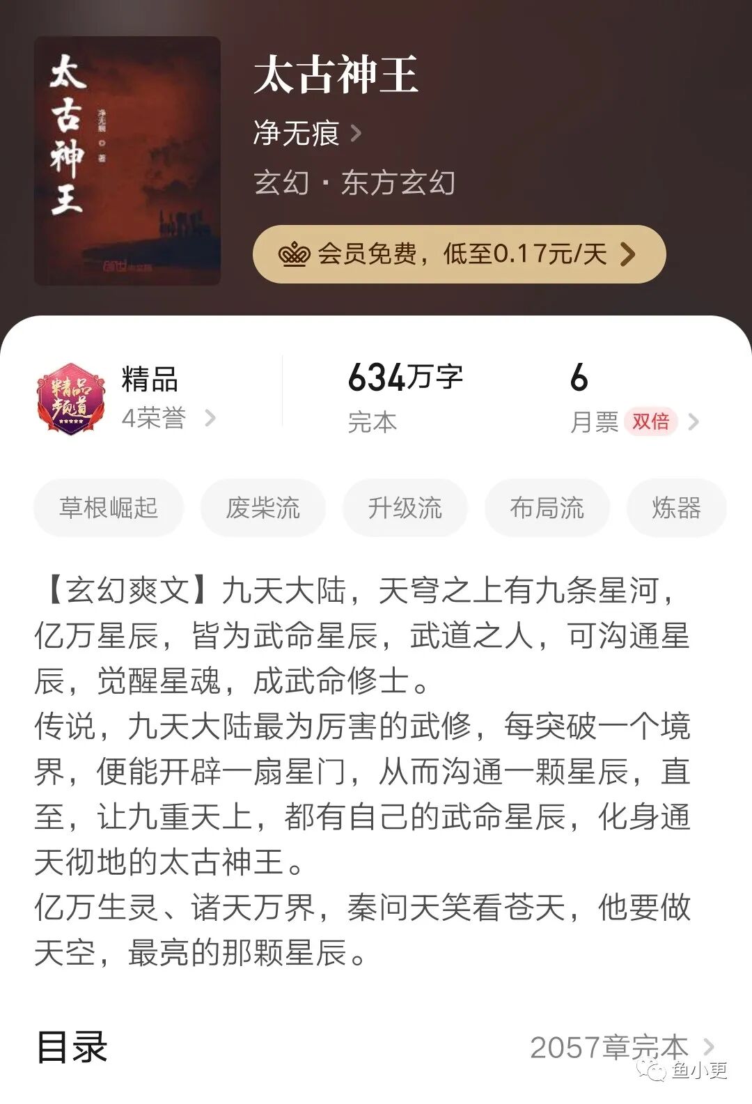 今天小鱼就来推荐《太古神王》这本小说,应该有不少老读者们都看过,要是没看过的小伙伴们可以留意一下哦!很不错的呢,升级爽文又耐看。