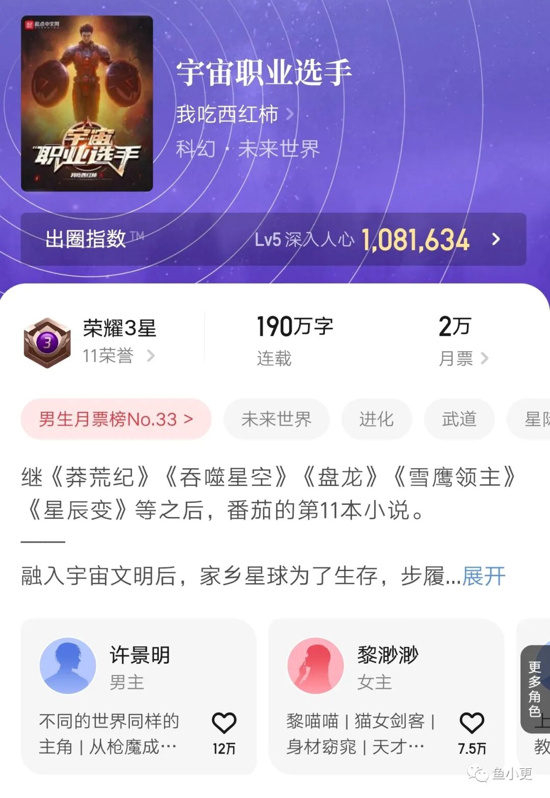 《宇宙职业选手》到最终篇了,大概还有三五十章节或者十万字左右就要完结,不知道追更的小伙伴们作何感想?