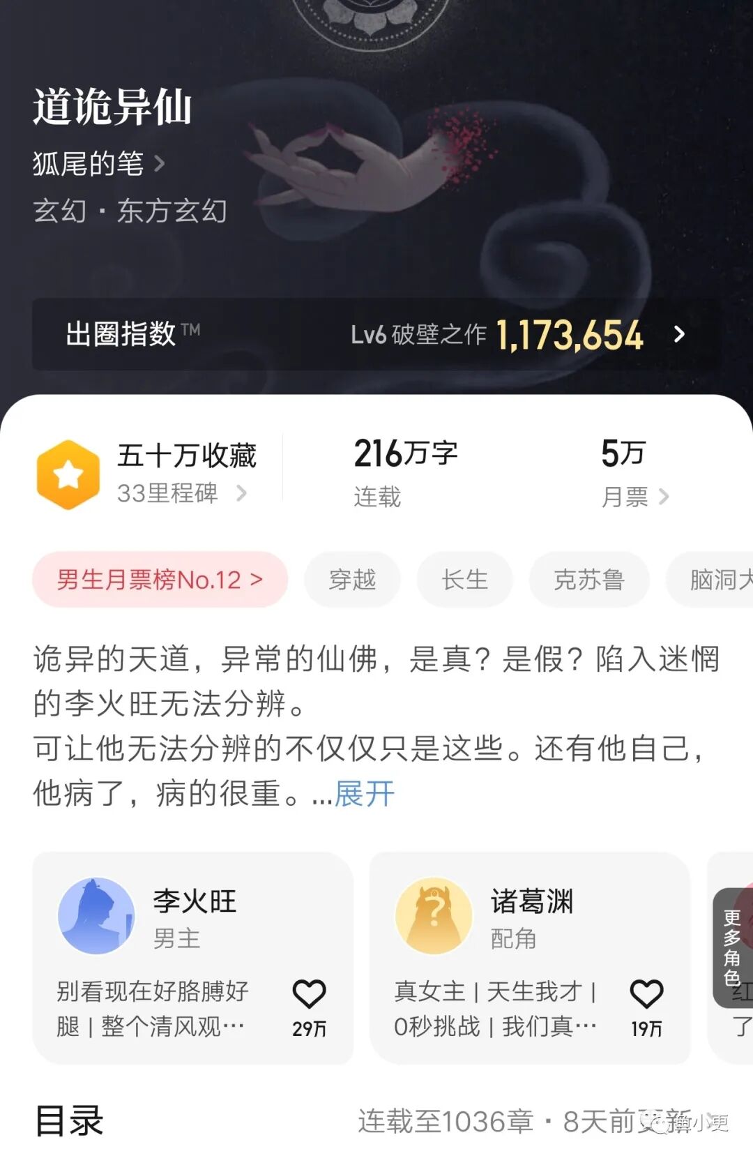 对于这本书,虽然不是小鱼喜欢的类型,但也追更了几十上百万字。作者文笔风采确实流批,把重症精神病患者现实与幻想相结合,以及修仙和明间神话故事的融入,看起来一点也不拖沓,属实不易啊!