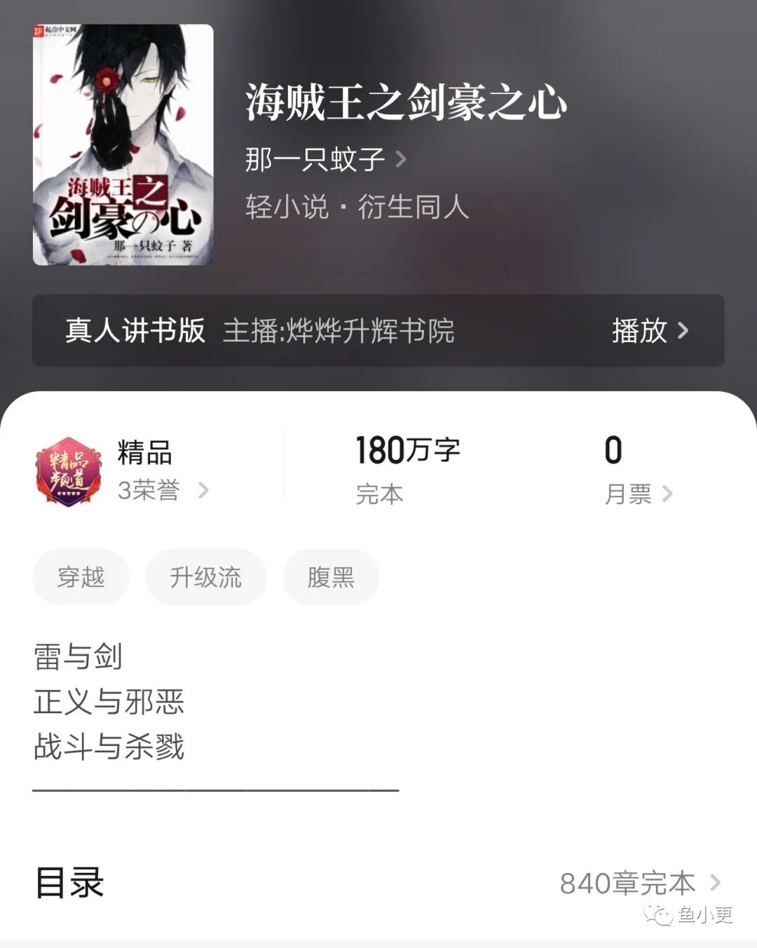 这本书无论是世界观,还是人物塑造,都只是一般般而已,没有多大吸引力。本书唯一有吸引力的是不看细节,主角一路升级打怪爽翻天。在这个海贼王人吃人的世界里,看你不爽就砍,有仇那更是没得说。所以主角双刀都被砍成妖刀节奏来。