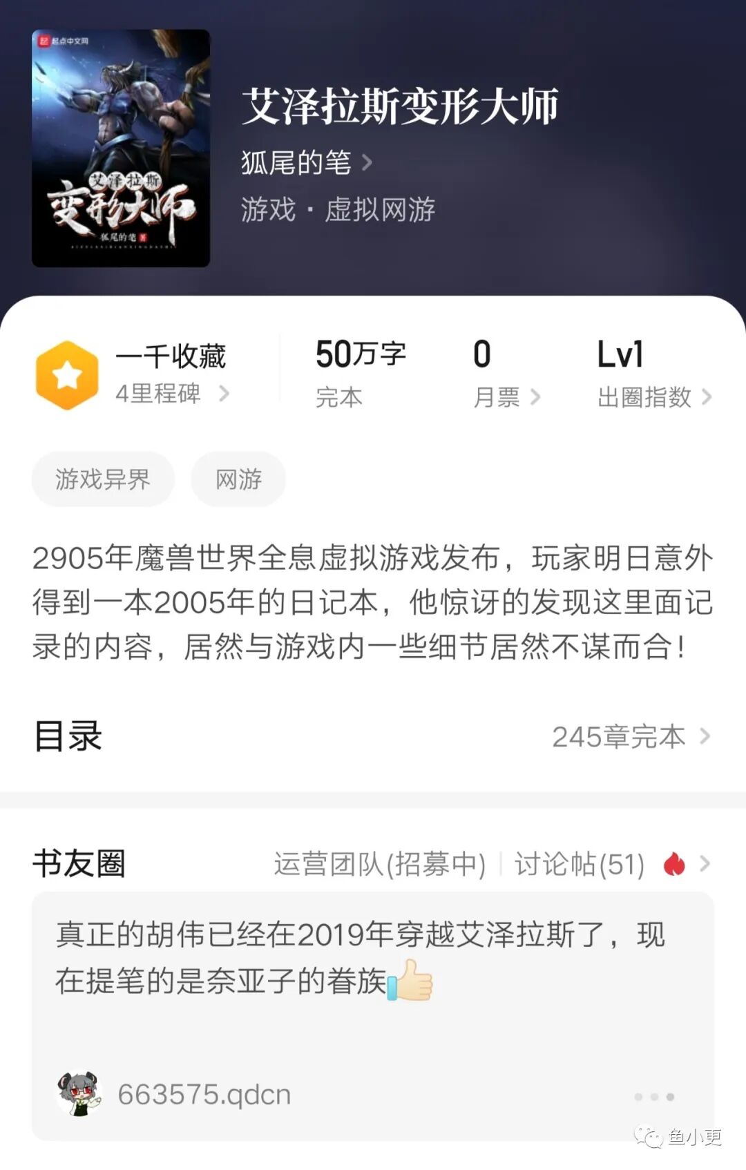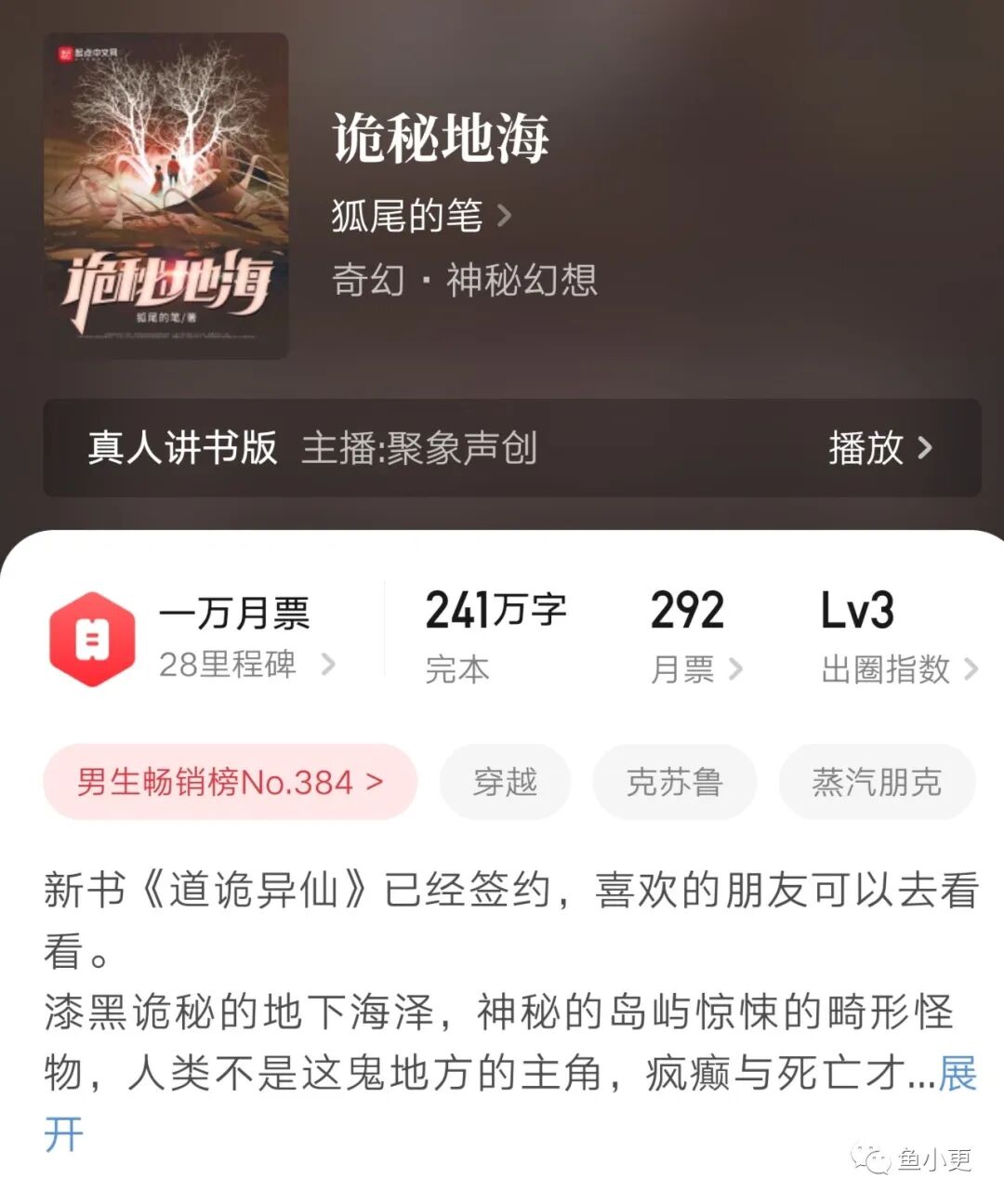 最后一本凑字数,也是作者试水作品,不到五十万字基本没啥看头,所以小鱼就不推荐了。
