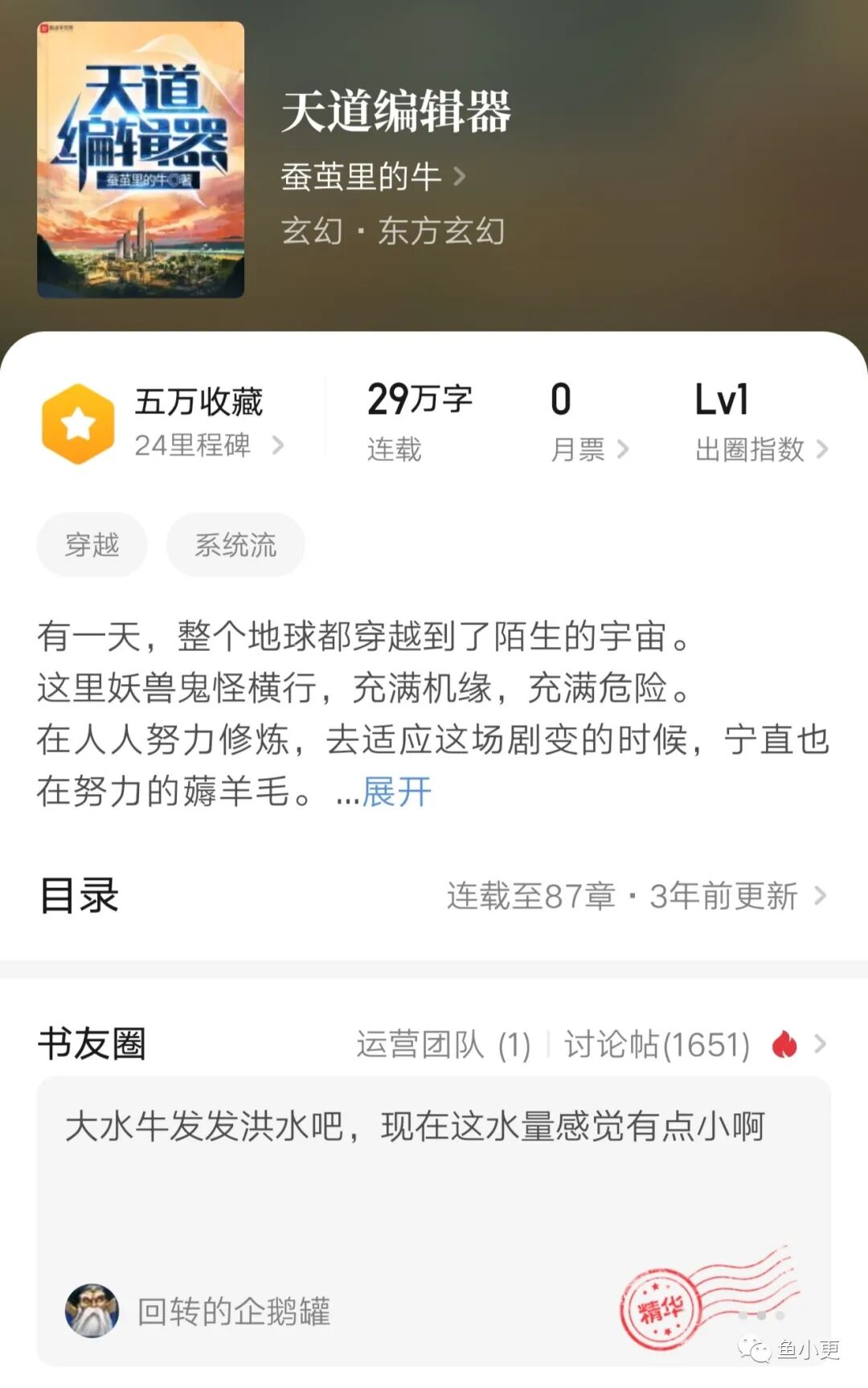 接下来小鱼介绍一位起点白金大神,他出道即是巅峰,后面直接九十度下坡路,转型失败,到现在写一本扑街一本。